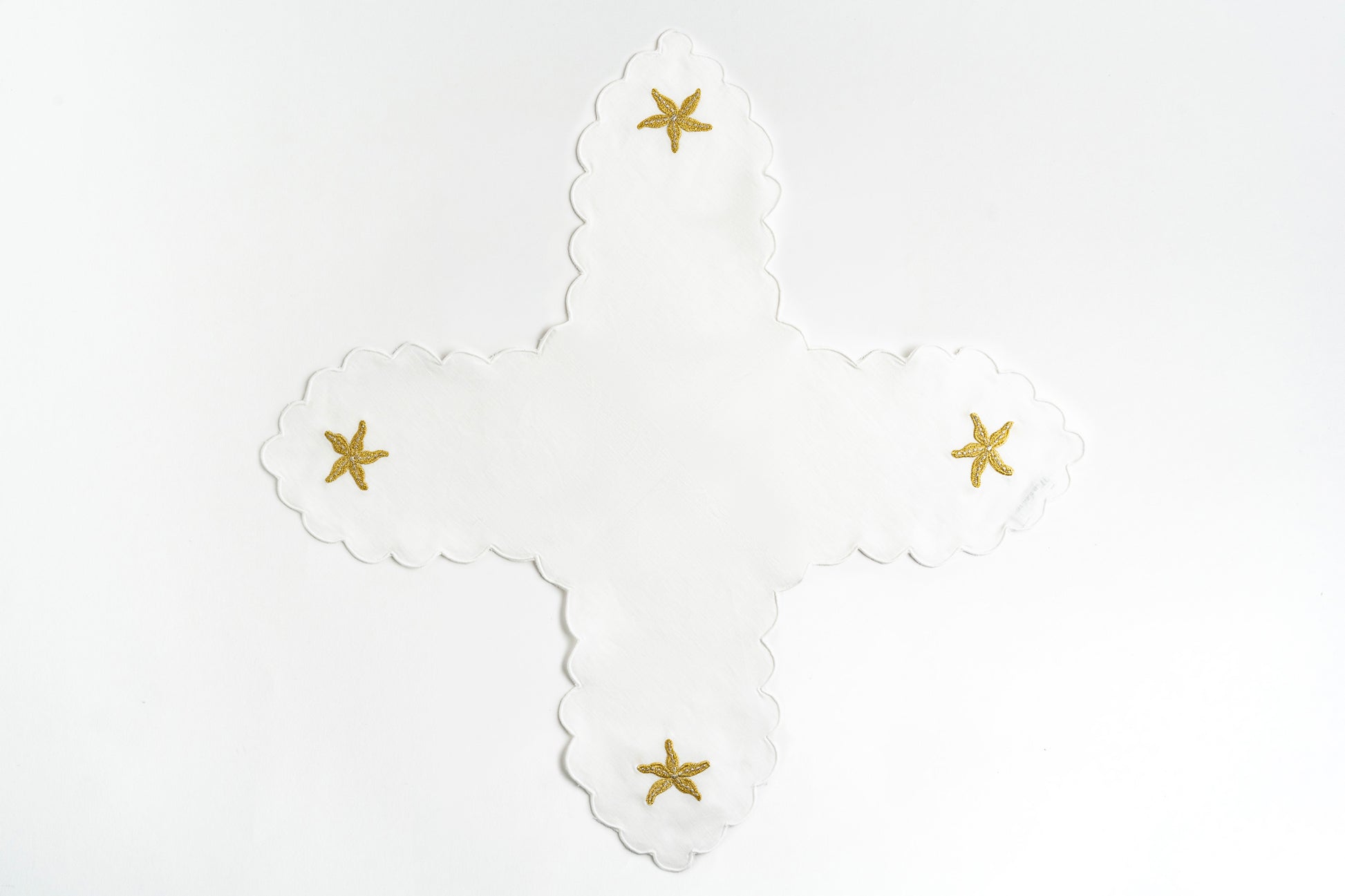 حوّل تجربة تناول الطعام الخاصة بك مع Étoile de Mer Dorée من مجموعة التوقيع لدينا. هذه القطعة الرائعة، المزينة بتطريزات معقدة من الذهب والفضة، تجسد حبًا عميقًا للبحر. دع جمالها يسحر طاولتك ويُلهم تجمعات لا تُنسى!